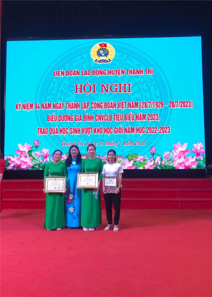 Rất vinh dự, gia đình cô giáo Đinh Thị Thu Hương, và cô Nguyễn Thanh Yên- Công đoàn Trường mầm non xã Vĩnh Quỳnh được nhận giấy khen gia đình CNVCLĐ tiêu biểu và biểu dương trong Hội nghị.